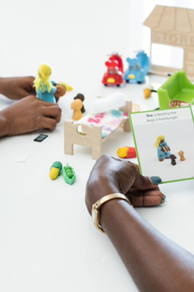 Teaching language is as easy as opening the box and starting with the level 1 picture cards. Ideally you're the speaker first. Once they demonstrate a good understanding, give them a turn being the speaker. Use the kits one-one or in a small group.