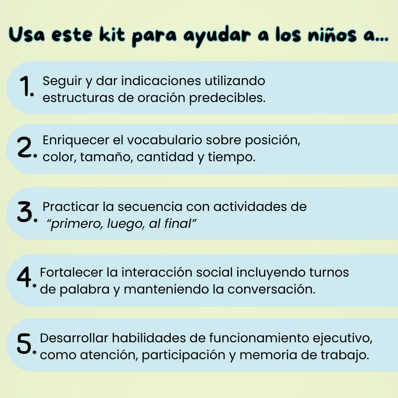 Perfect as a tabletop activity for 4–5 students. Place the objects on a tray so they can be easily passed to the “listener.” Read a card aloud and have the listener take the required items off the tray to make the arrangement. Provide any supports the child may need, and let them keep the picture card as a point. The items are then returned to the tray, and the process is repeated with the next child. This also makes a wonderful “buddy class” activity, where older students can take on the role of the “teacher.”